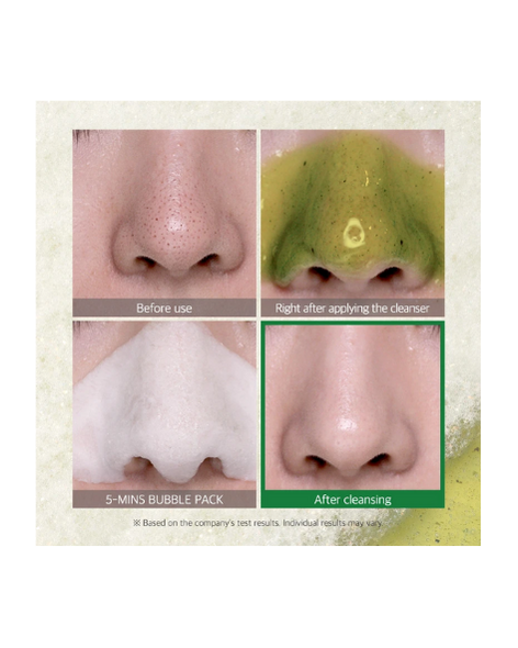 2: En el minuto 4 las burbujas de BHA, los granos de konjac y las hojas de té verde funcionan como exfoliantes naturales que ayudan a limpiar la piel y a remover los puntos negros.
