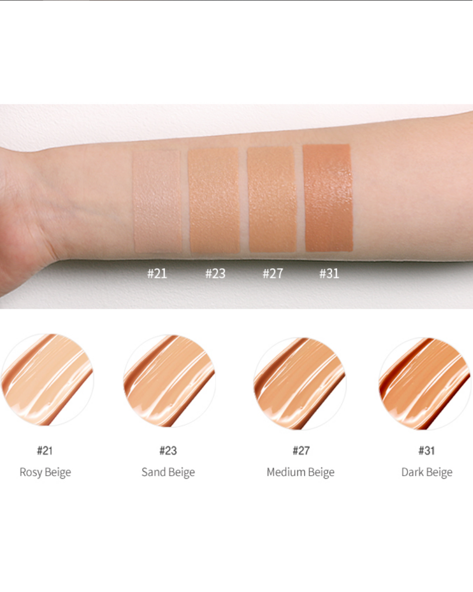 Cobertura completa de todo tipo de imperfecciones, tiene un acabado natural de larga duración que empareja el tono de la piel.