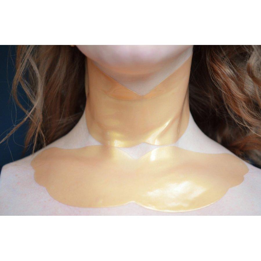 Su contenido de oro de 24K y una fórmula especial ayudan a reafirmar y mantener visiblemente sano el cuello y escote