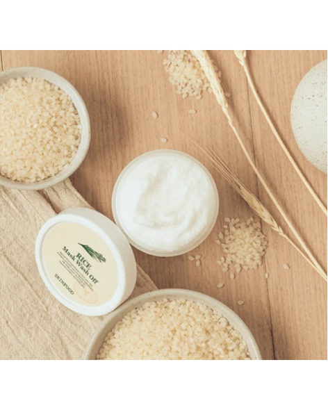 Esta mascarilla ayuda a Iluminar y suavizar con arroz rico en nutrientes.